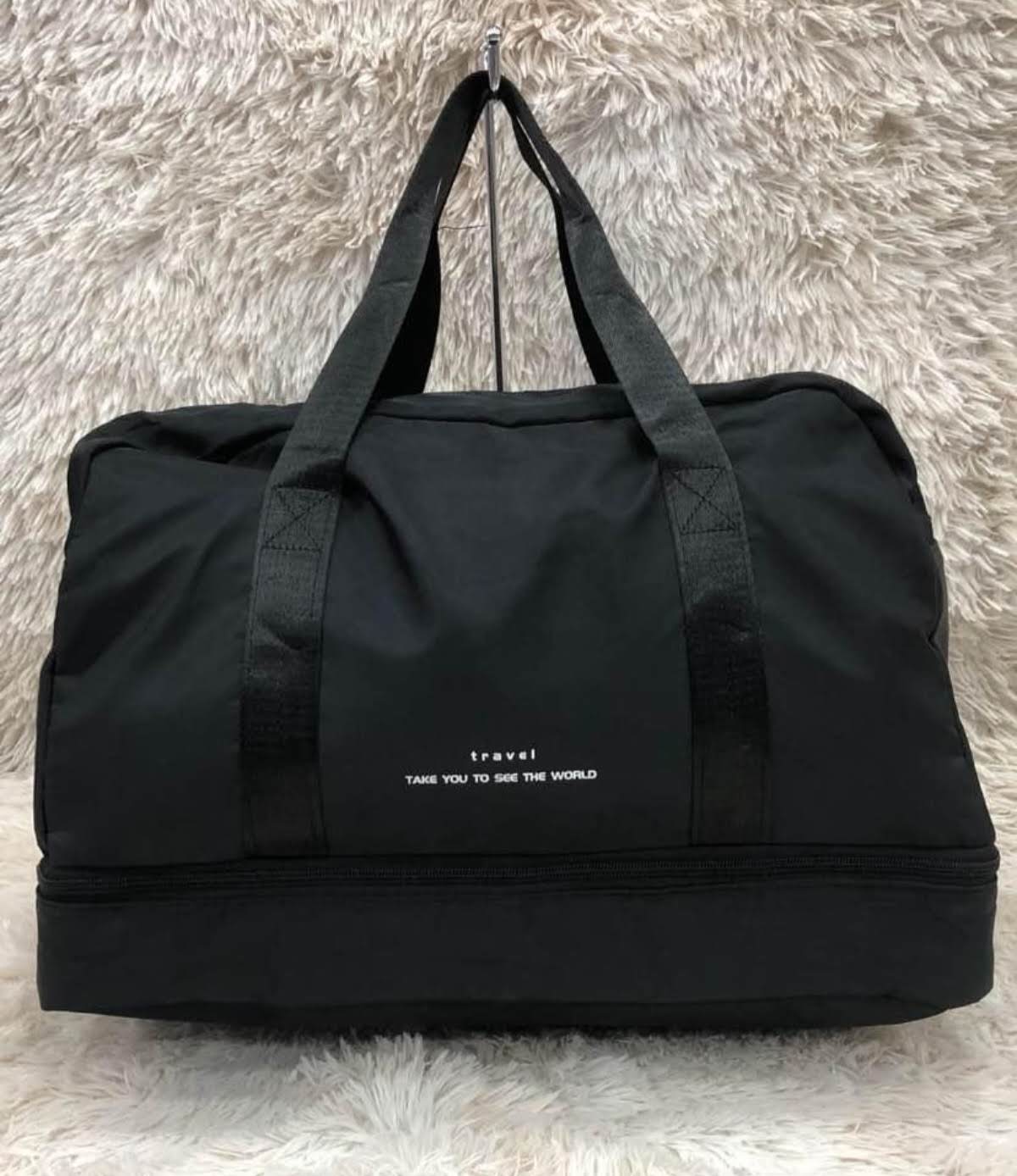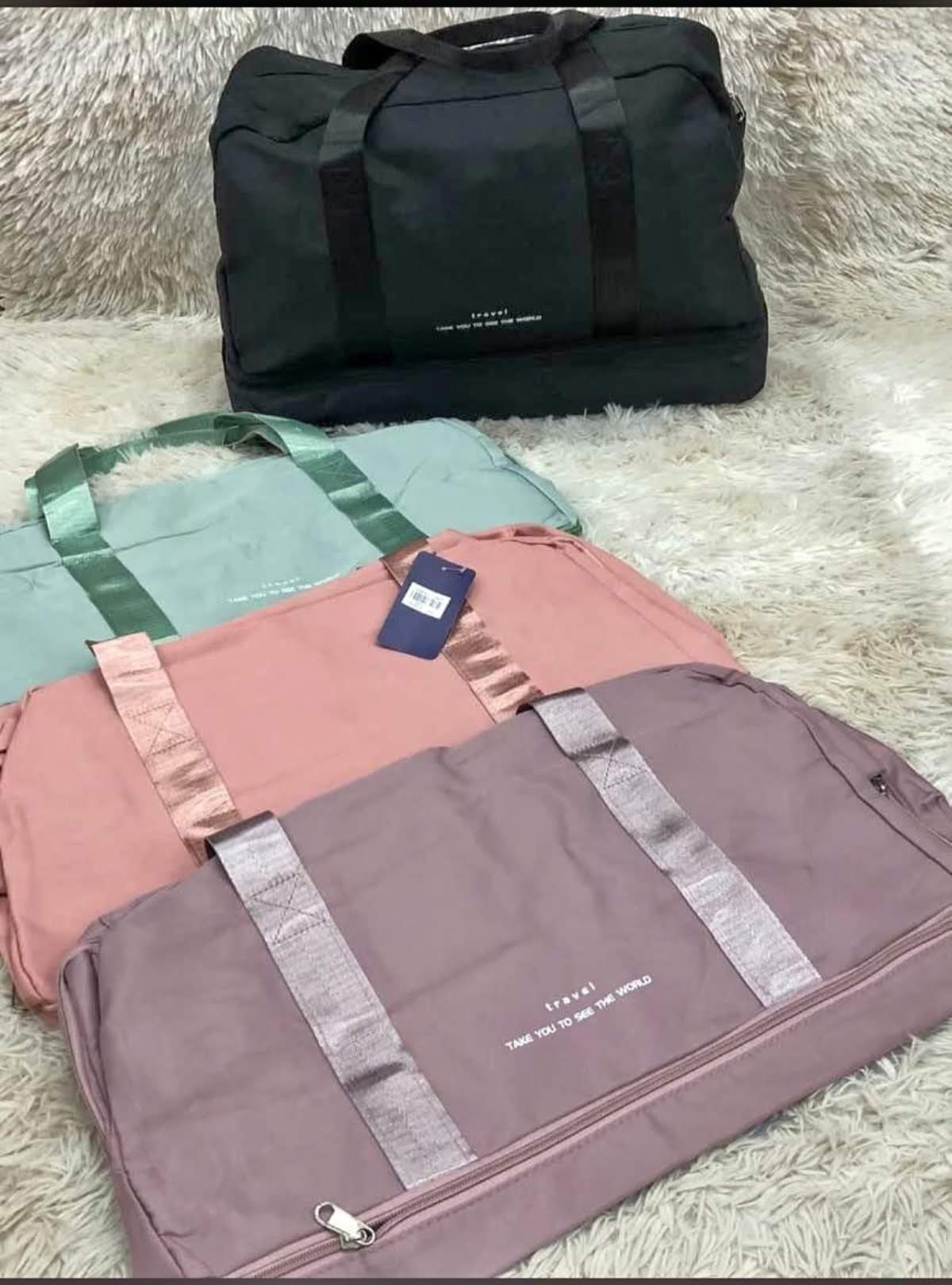Ela é Confeccionada em poliéster de ótima qualidade! Pode ser usada como bolsa de mão ou tirar a alça que possui dentro da bolsa e fechar em cima para ser usada no ombro. Conseguindo regular conforme for adequado para você. Na sua parte externa, possui um bolso lateral com um bolso-saco embutido, separado para peças úmidas e um bolso traseiro com zíper, na sua parte interna possui de um lado um bolsinho com zíper e do outro lado um compartimento com fecho.